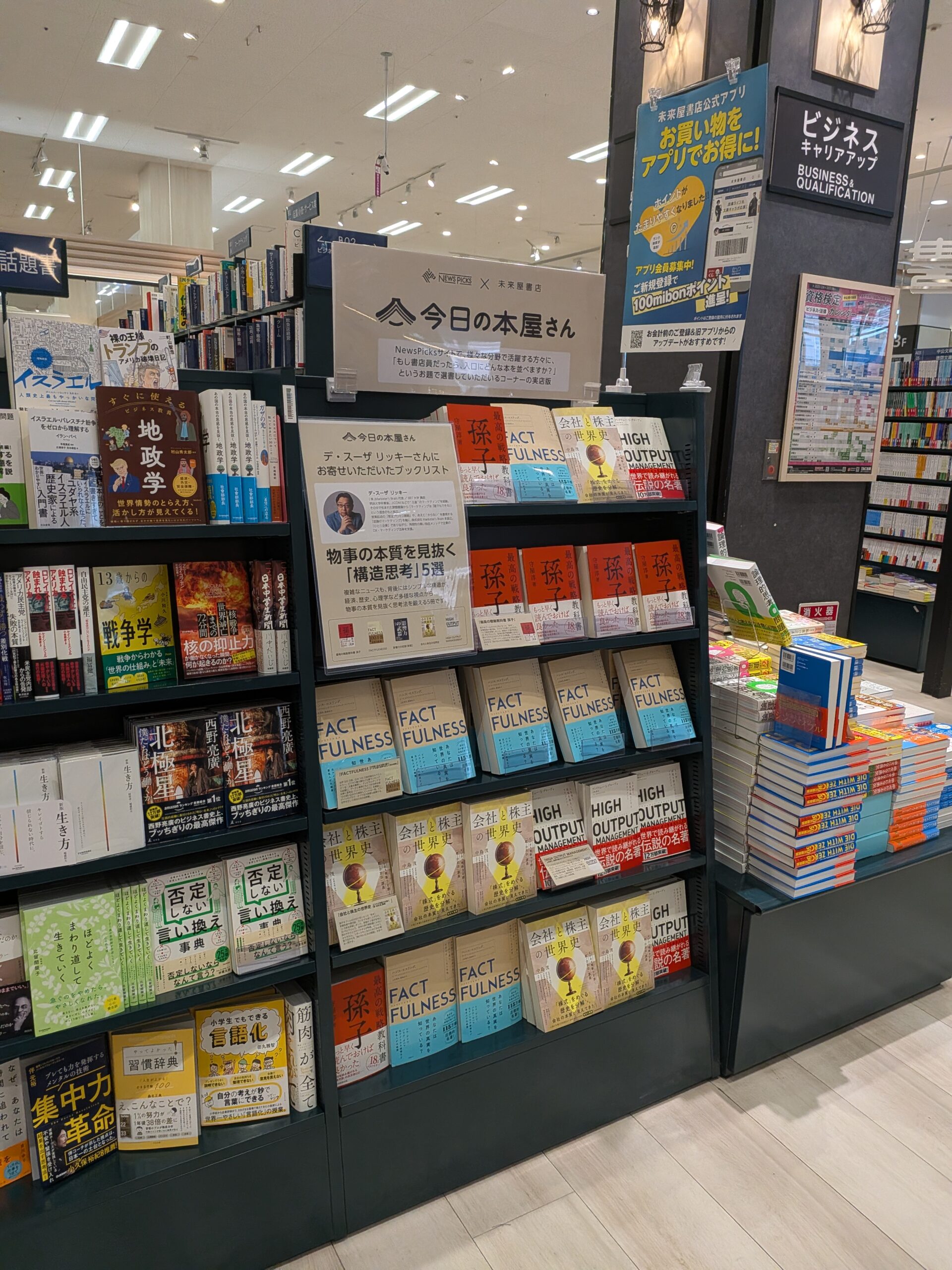 2026年3月より千葉県・津田沼店(イオンモール)にて先行展開が開始されており、4月以降は未来屋書店チェーン複数店舗への拡大が予定されています。選書テーマ:「物事の本質を見抜く『構造思考』5選」