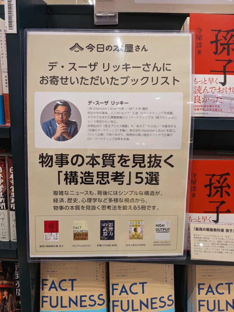株式会社Marketer’s Brain代表・デ・スーザ リッキーの選書が、NewsPicks(株式会社ユーザベース)と未来屋書店が連携する書店フェア企画「BookPicks」に採用されました。